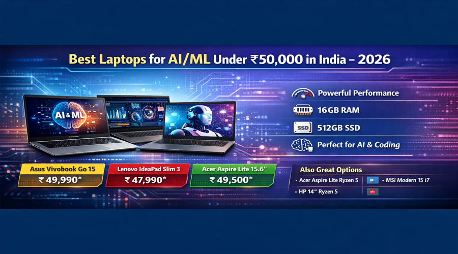Best Laptops in 2026, AI and Machine Learning (ML) are no longer buzzwords — they’re essential skills for students, developers, and tech enthusiasts across India. Whether you’re running Python scripts, training small models in Jupyter Notebook, or using AI tools for data science coursework, choosing the right laptop is critical — especially on a budget.